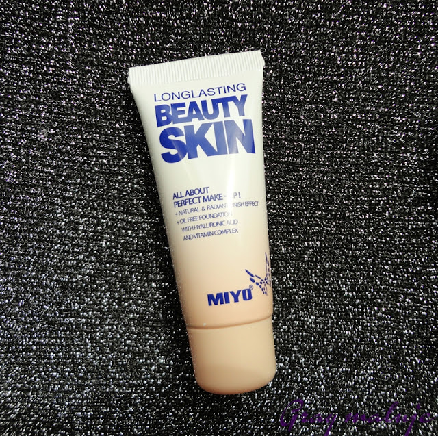 Wracając jednak do tematu, a właściwie do bohatera dzisiejszego posta, czyli nowości marki MIYO - podkładu Longlasting Beauty Skin, muszę przyznać, że ucieszyłam się z faktu, że podkład ten, choć jest to drugi z kolei 02 Shell, jest jasny! Pierwszy, jest zdaje się nieco jaśniejszy a na pewno bardziej żółty (01 Ivory), Shell jest to natomiast odrobinę bardziej brzoskwiniowa (brzoskwiniowo-beżowa?) wersja, która wbrew pozorom, wcale nie wygląda na skórze źle, bo ładnie ją ożywia.